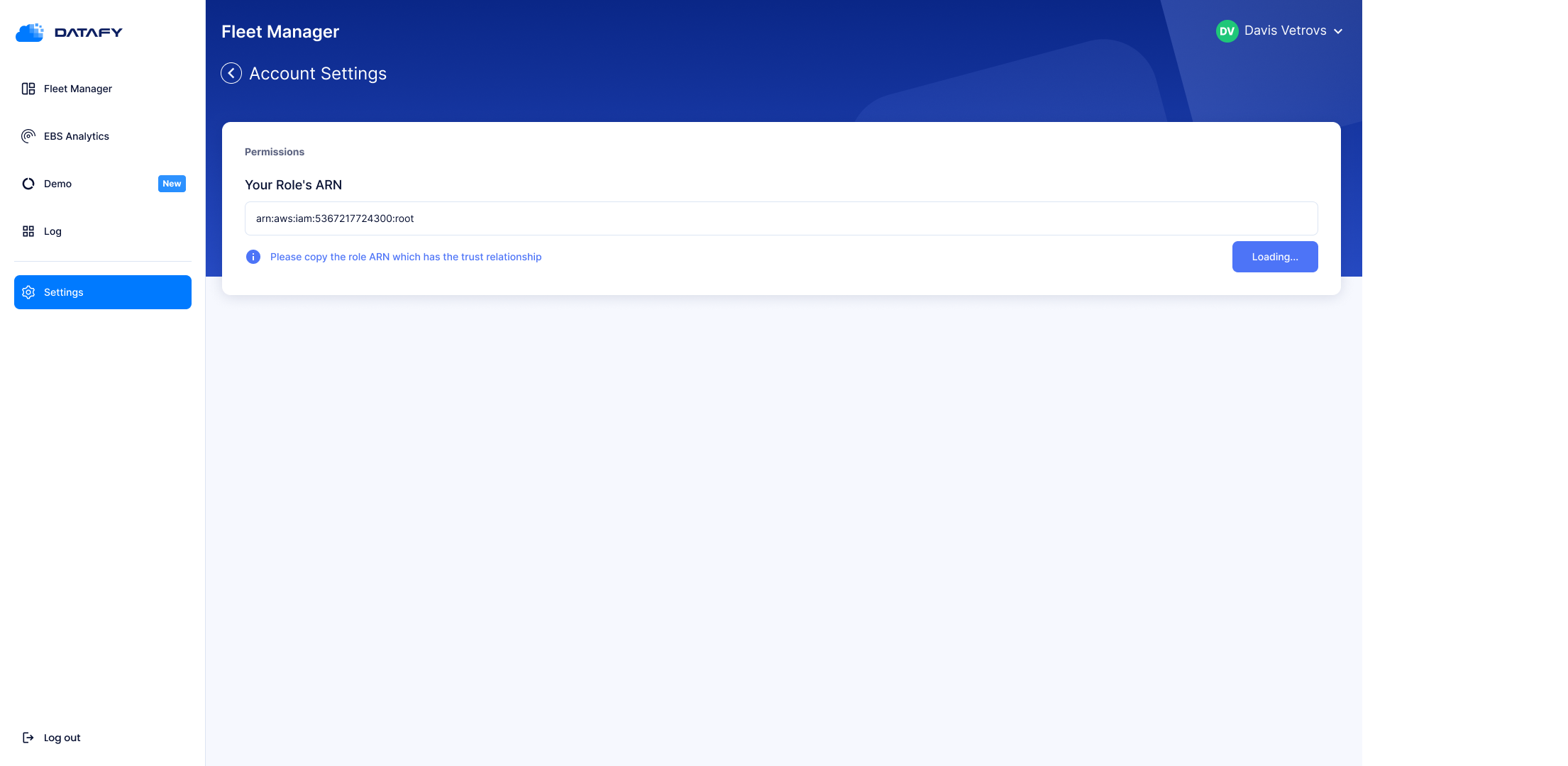 After you've created and defined the IAM role, you can see all of the volumes in your account in the [Datafy dashboard](https://app.datafy.io/fleet-manager).&#x20;