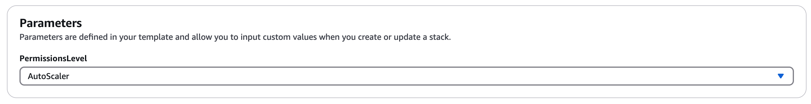 Use the dropdown in the Parameters section to choose the desire permissions level